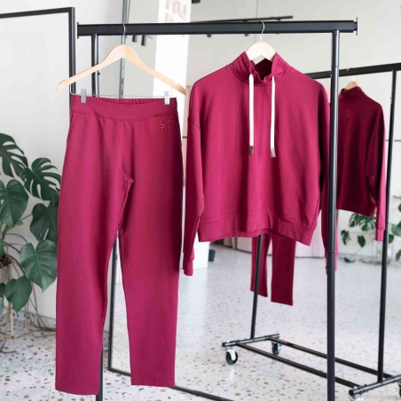 Pohodlí, které má styl. Tato tepláková souprava z kolekce RE:NEW přináší nový pohled na ležérnost - mikina bez kapuce s límcem a tkaničkami působí elegantně a originálně zároveň. Rukávy zakončené patentem drží tvar. Tepláky s rovným střihem, bez patentu nabízí volnost, přirozený spád a minimalistický vzhled. Ideální volba pro dny, kdy se chceš cítit dobře – zvenčí i zevnitř.